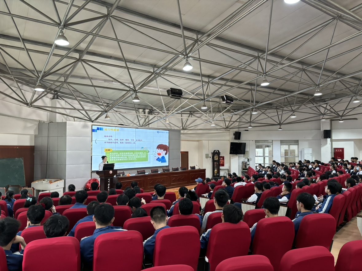 张丽主任主要从合理膳食,健康生活、我运动 我健康、季节性流感预防知识三个方面分别向学生阐述营养过剩营养不足的危害、运动的方式和好处、传染病防控的重要性及正确方式。张主任首先介绍了当前常见的传染病种类、传播途径和预防措施她强调了个人卫生习惯的重要性,提醒师生们要勤洗手、戴口罩、保持室内通风等,有效减少病毒传播的风险。同时,还就如何预防感冒、流感等季节性传染病进行了详细讲解。她建议师生们要合理饮食、加强锻炼、保证充足的睡眠,增强身体免疫力,从而抵御疾病的侵袭。