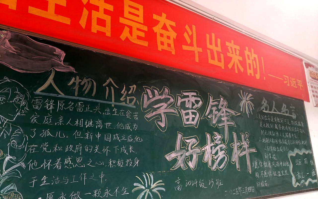 高一年级以“雷锋精神永放光芒”为主题设计黑板报。28个班级作品经政教处评比,高一23班《学习雷锋好榜样》获优胜奖。高二年级召开“新时代雷锋精神”主题班会,采用情景剧、辩论赛等形式,收集学生感悟随笔百余篇。