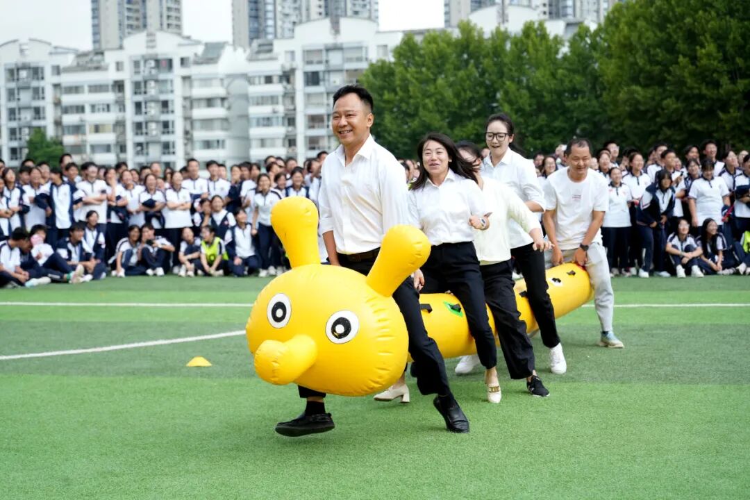 2025年教职工趣味运动会在学校田径场拉开序幕。本次运动会以“趣享运动·凝心聚力”为主题,设置3个团体协作项目与3个单项挑战,吸引了教职工踊跃参与。