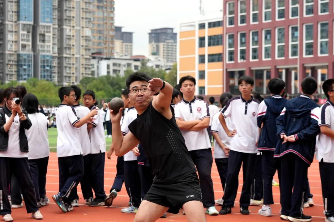 100米短跑的赛道上,年轻的“90后”“00后”教师如离弦之箭冲向终点,爆发力十足;35岁以上的“资深教师”组则展现出沉稳与耐力,有的老师虽不似年轻人迅猛,但步履坚定,引得观众席响起阵阵加油声。在男子铅球区成了“力量担当”的舞台,参赛老师们摆臂、转身、推球,动作一气呵成。 跳远比赛的沙坑旁,老师们助跑、起跳、腾空,每一次落地都伴随着观众的惊呼与掌声。
