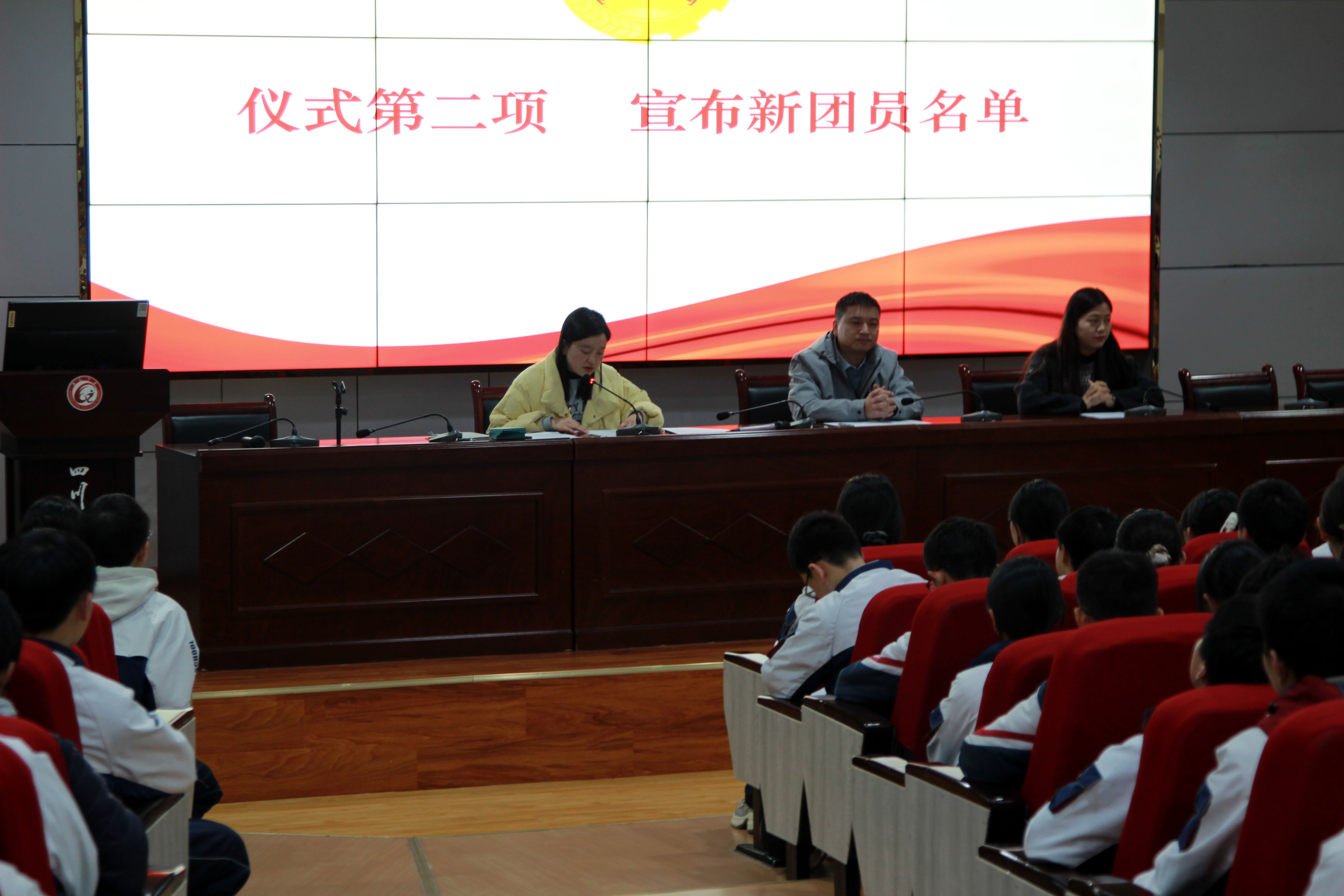 仪式第二项,宣布新团员名单。随着校团委副书记郑小娟老师对新团员名单的郑重宣读,一批品学兼优的青年学子正式加入共青团组织。这不仅为团组织注入了新鲜血液,更彰显了共青团组织强大的凝聚力与感召力。青春逢盛世,奋斗正当时,这批新团员将在团组织的引领下,以青春之我、奋斗之我,在强国建设、民族复兴的征程中书写属于新时代青年的绚丽篇章。