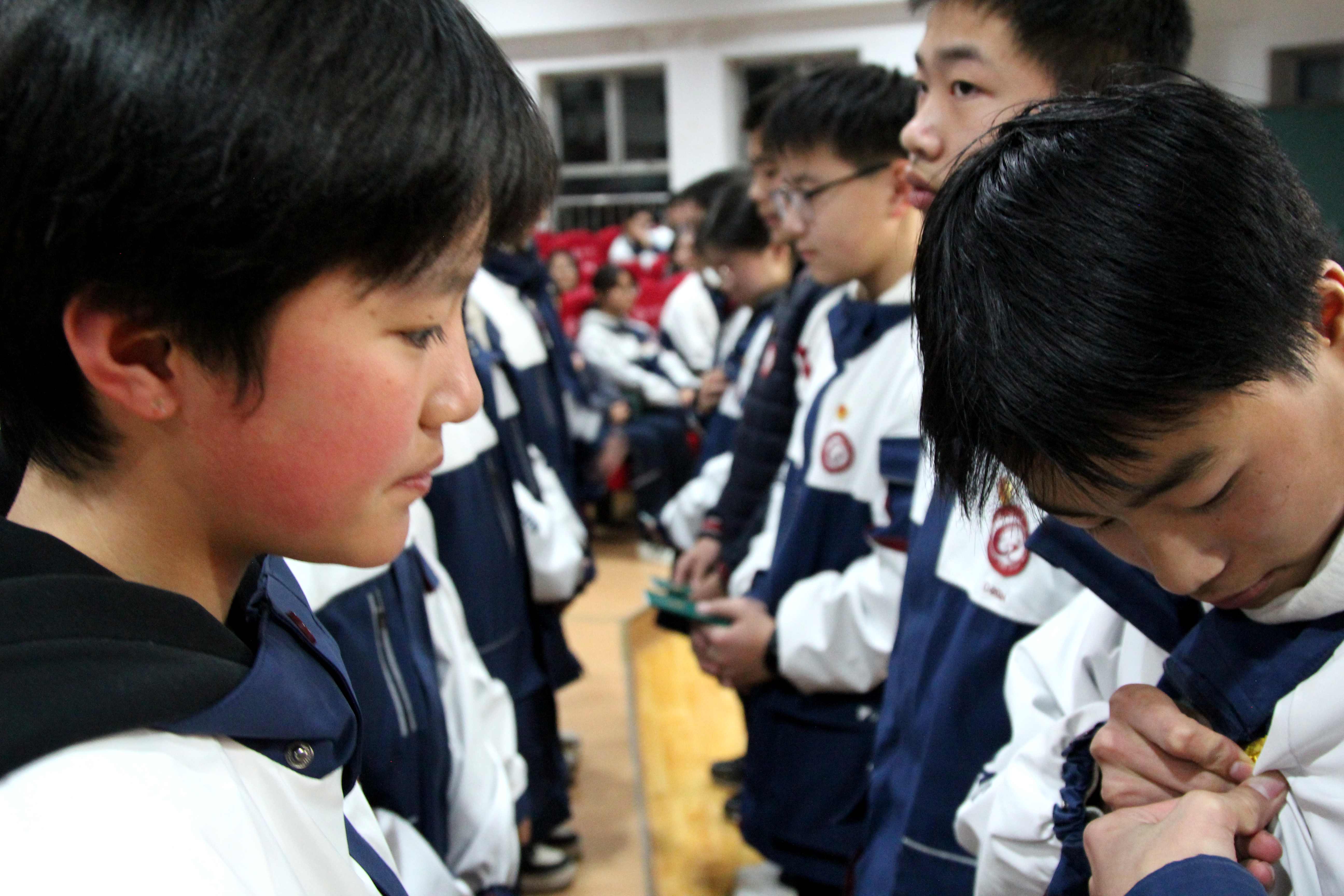 仪式第三项,颁发团员证与佩戴团徽。老团员代表手持闪耀的团徽与团员证,为新团员逐一佩戴、郑重递交。一枚团徽,是一份光荣的象征;一本团员证,是一份沉甸甸的责任嘱托。新团员们抚摸着胸前的团徽,眼神中满是自豪与坚定,纷纷表示将以入团为新起点,严格遵守团的章程,自觉践行团员义务,在学习与生活中发挥先锋模范作用,用实际行动为团旗增辉添彩。